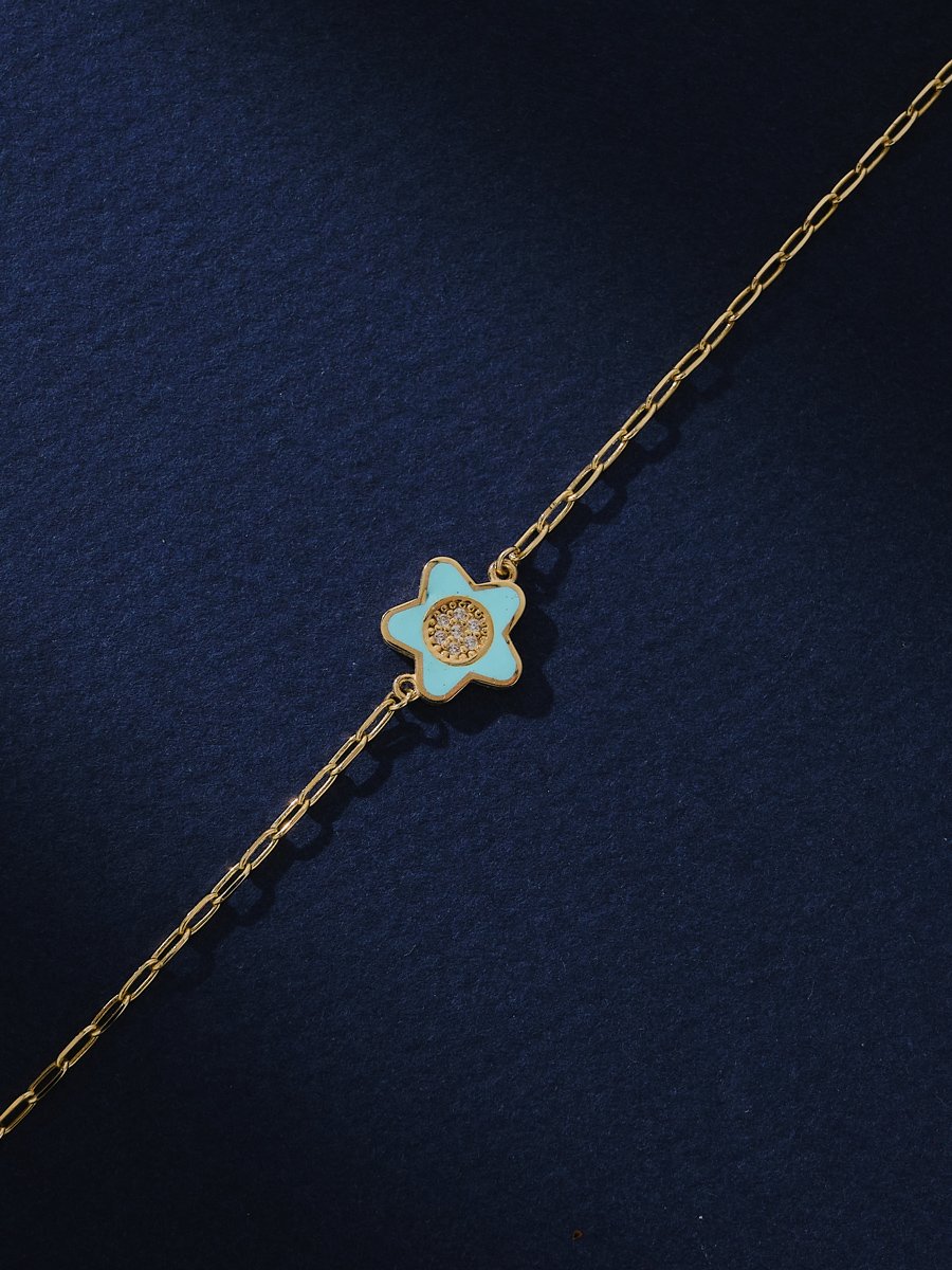 14 Ayar Mavi Mineli Çiçek Bileklik