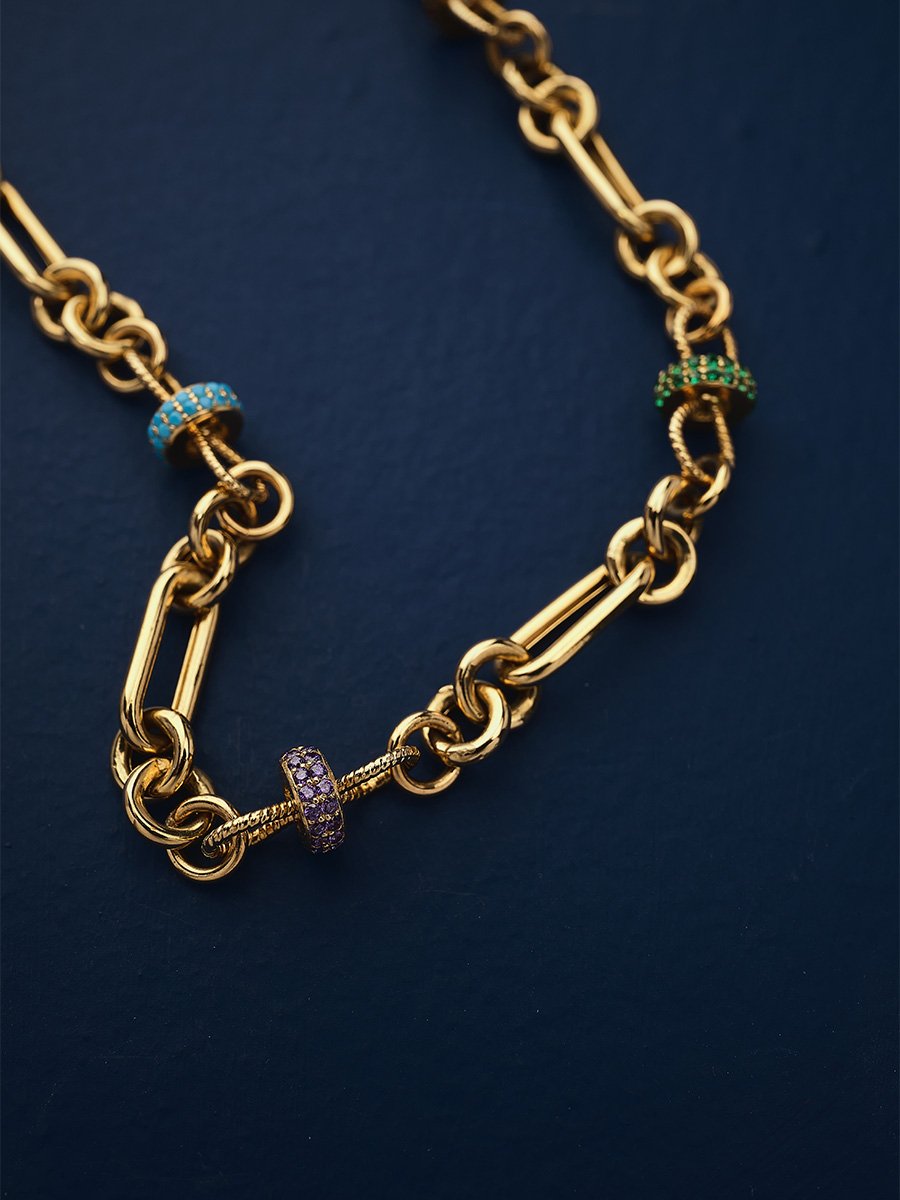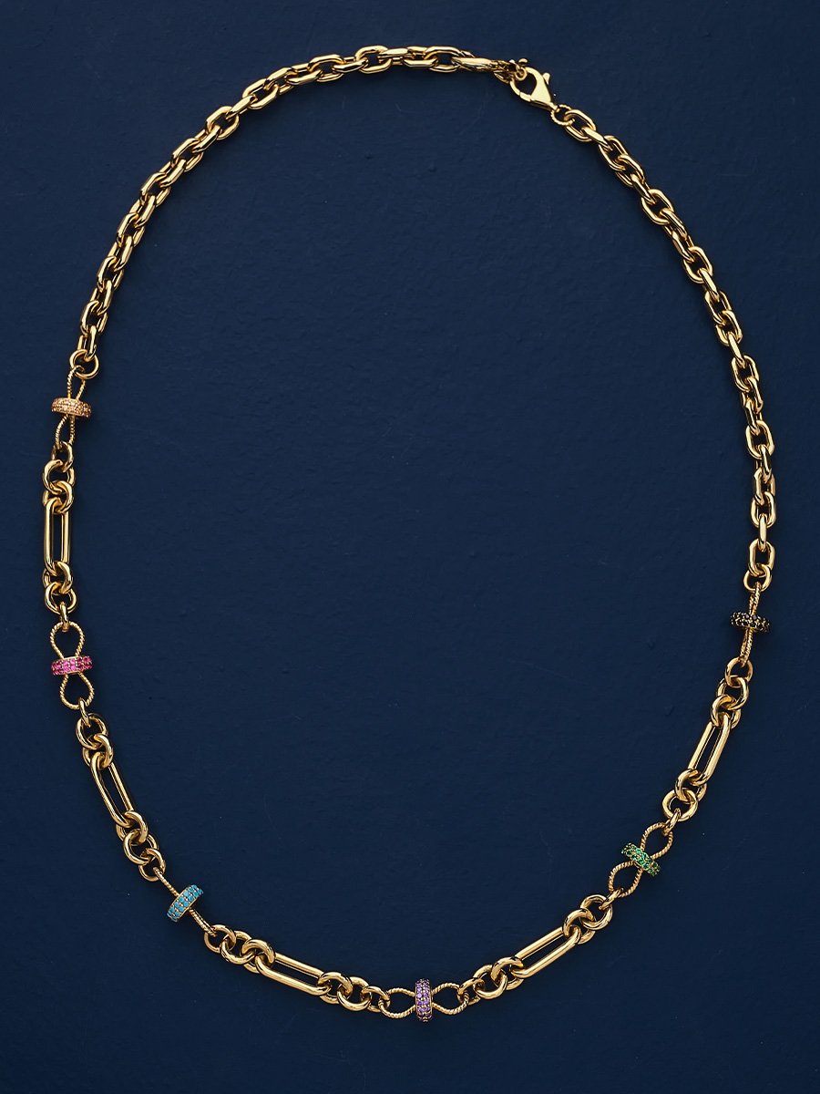 14 Ayar Renkli Taşlı Zincir Kolye