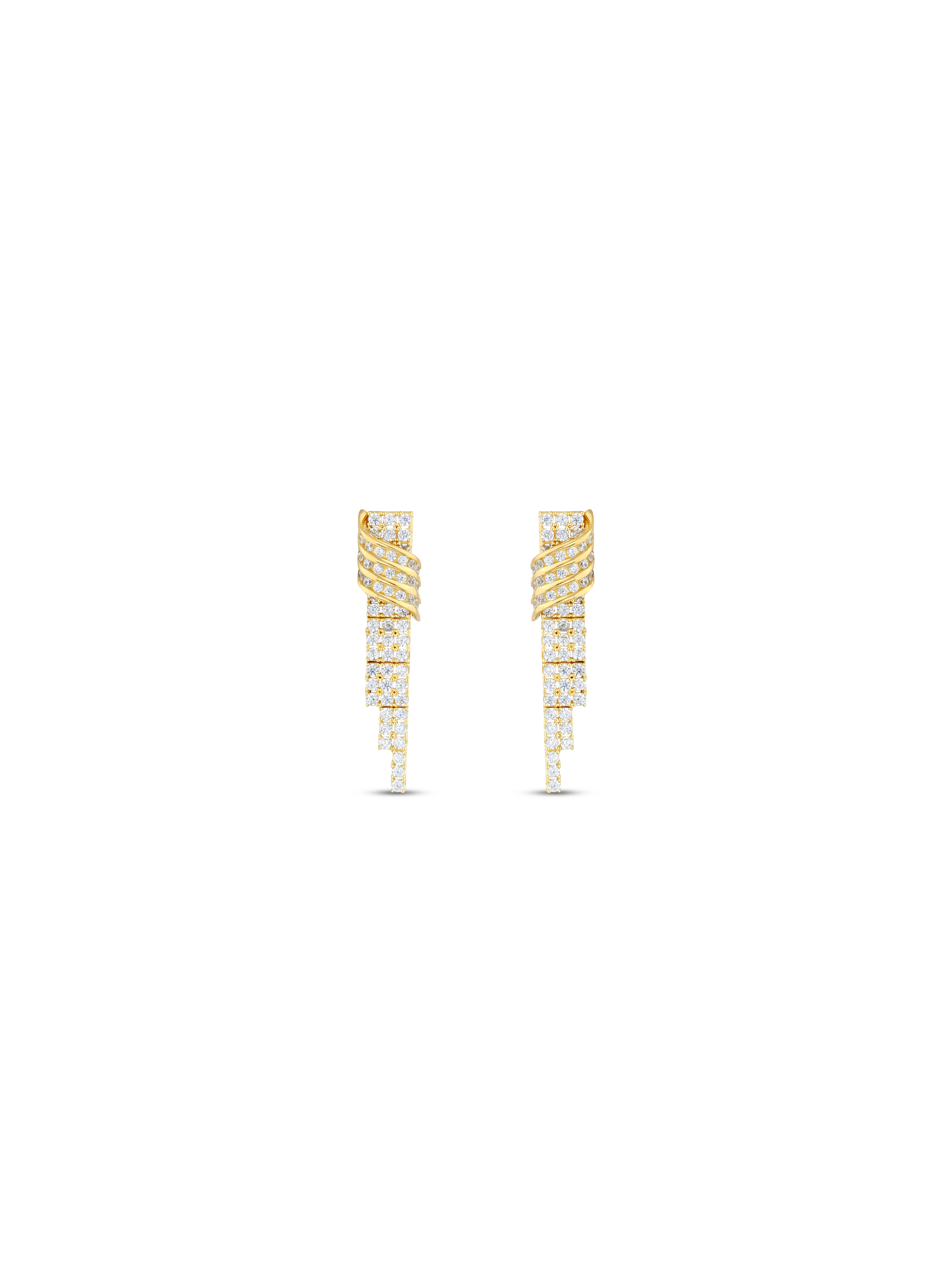 14 Ayar Sarı Üç Sıra Sallantılı Su Yolu Küpe