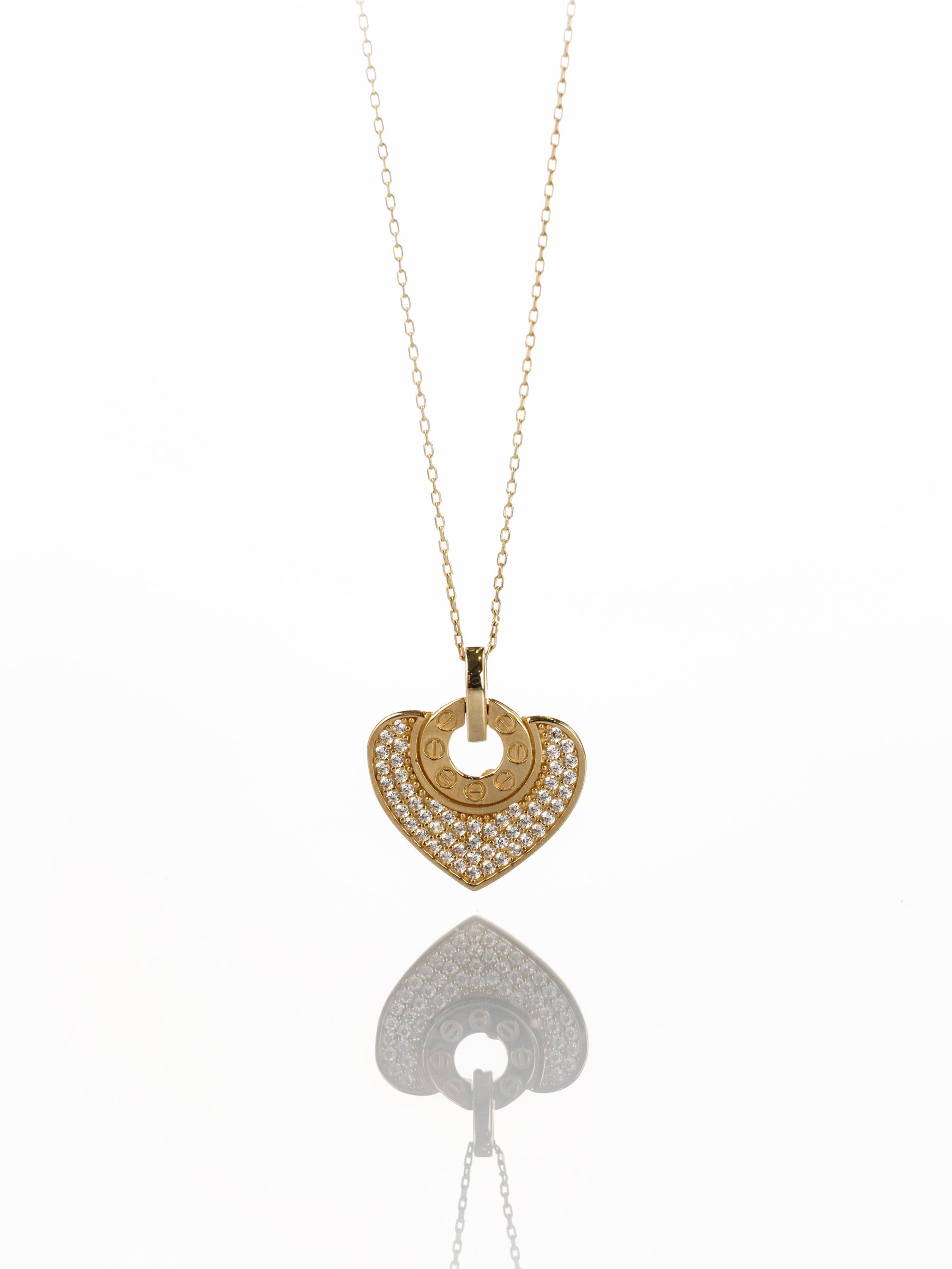 14 Ayar Taşlı Kalp Kolye