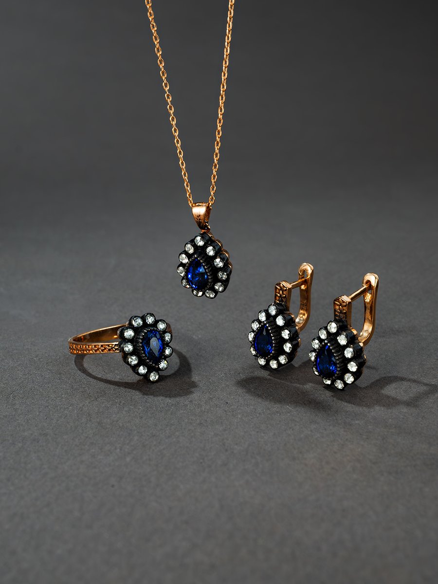 Damla Safir Taşlı Elmas Yüzük