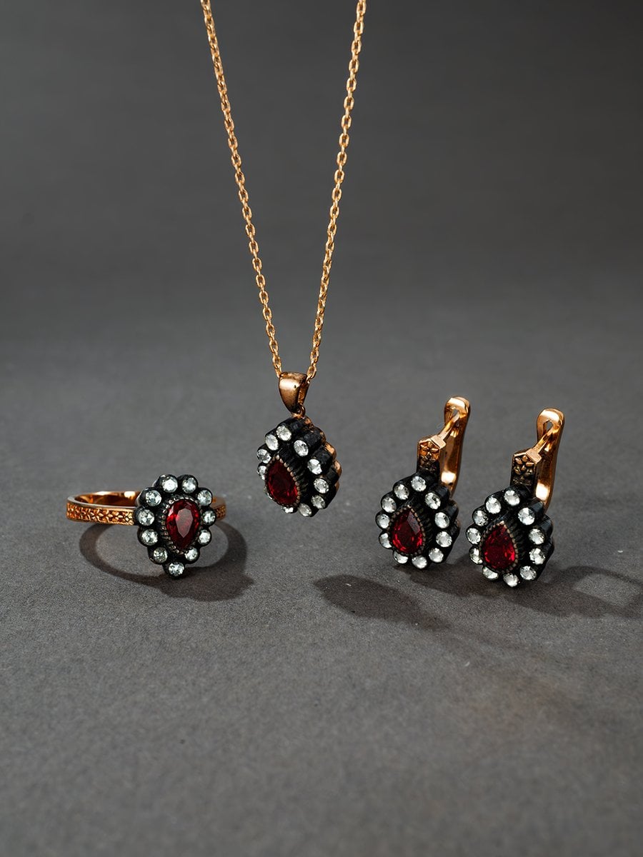Damla Yakut Taşlı Elmas Küpe