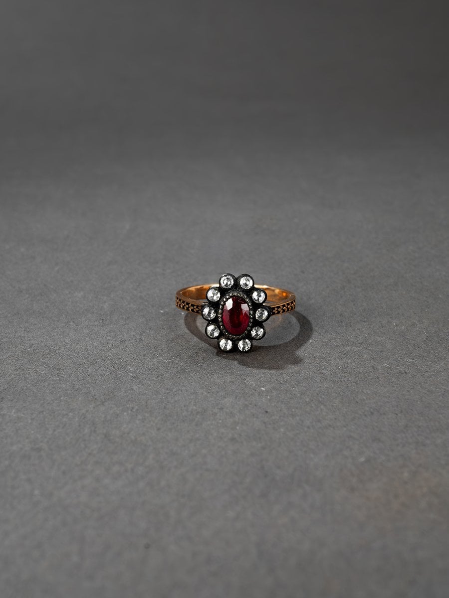 Oval Yakut Taşlı Elmas Yüzük