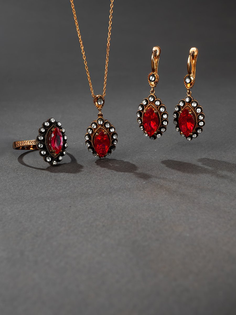 Yakut Taşlı Elmas Küpe